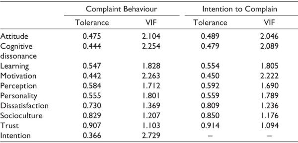 Table 6. Collinearity Statistics.