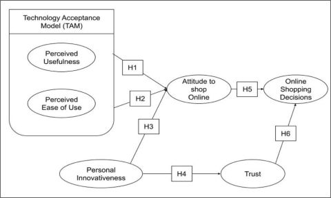 The TAM plays a noteworthy role in understanding consumer behaviour towards digital shopping. This model emphasises the importance of PU and PEoU, which directly influence consumers’ attitudes and intentions to engage in online purchasing. The integration of TAM with factors such as personal innovativeness (PI) and behavioural control further enhances its applicability in the online business context (O’Dea, 2025).