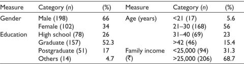 The G*Power software has been used to determine the sample size for the study. The researchers considered F-tests for linear multiple regression with fixed model, R2 deviation from zero, assuming a medium effect size (f2 = 0.15) at a 95% level of significance (α = 0.05) (Faul et al., 2009). The analysis indicated that a minimum sample of 144 respondents would be required. However, the researchers selected 300 respondents for computing the empirical results, indicating that the sample size was more than adequate.