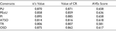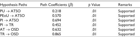 Table 6. Results of Hypotheses’ Testing Corresponding to the TAM.