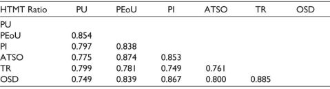 Table 4. Results for Discriminant Validity (HTMT Ratio).