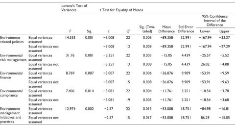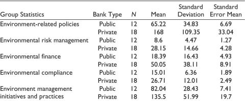 Table 2. Inferential Statistics for Selected Banks for Environment-related Policies.