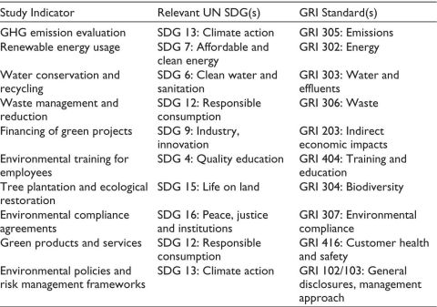 Table 4. Mapping of Selected Environmental Indicators to UN SDGs and GRI Standards.